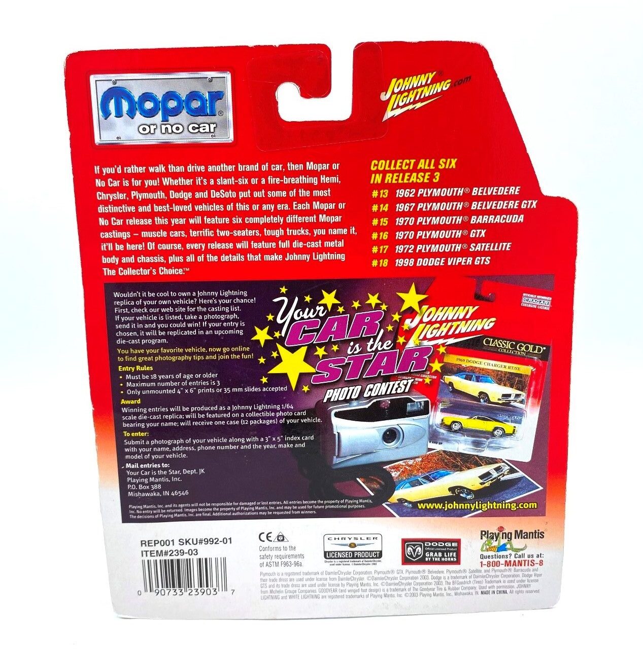 Mopar Or No Car Authentic Replicas Vintage 1970 Plymouth Gtx Collector Photocard 16 Die Cast Metal Body And Chassis Johnny Lightning Series 1 64 Scale Rare Vintage 2003 Now And Then Collectibles